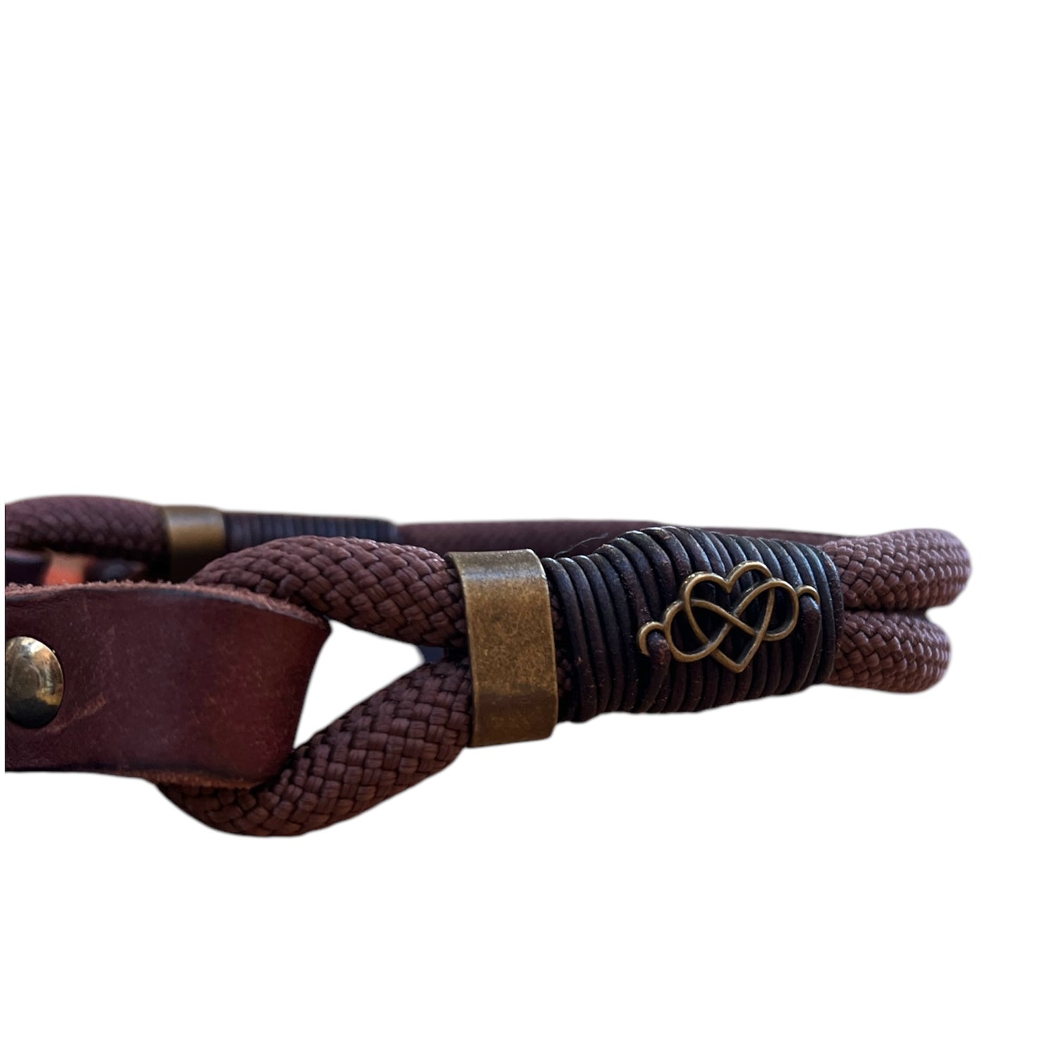 Dieses edle, handgefertigte Hundehalsband vereint hochwertige Materialien mit stilvollem Design. Gefertigt aus robustem Paracord in einem warmen Braun und ergänzt durch feinstes Leder, bietet es eine perfekte Kombination aus Stabilität und Komfort.